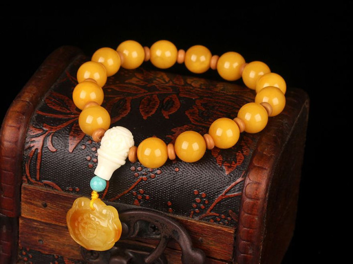 玉石串(和田玉、蜜蜡):氧化层填补细微裂隙,增强韧性。